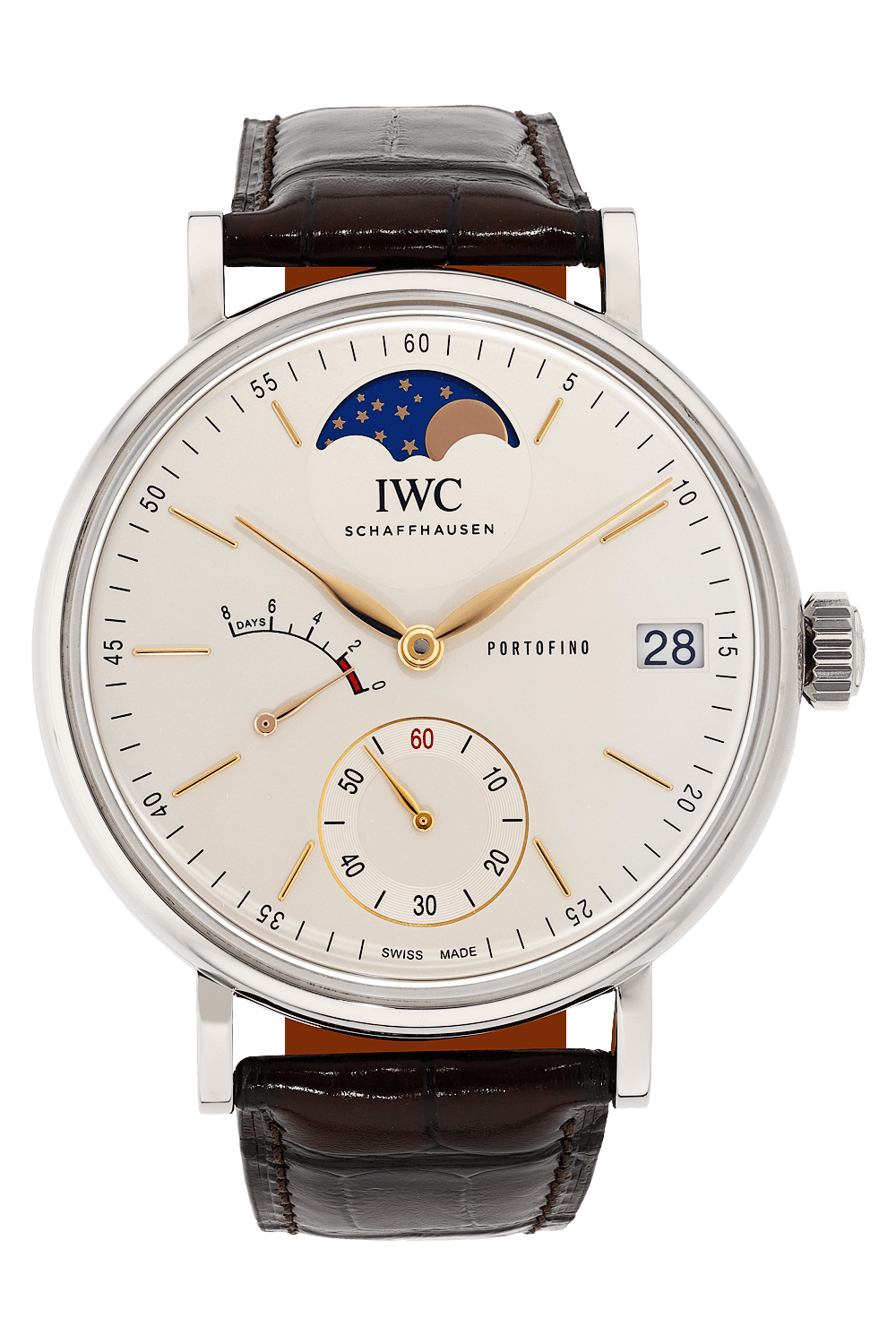 • Features Date, Moon Phase, Power Reserve, Second Hand