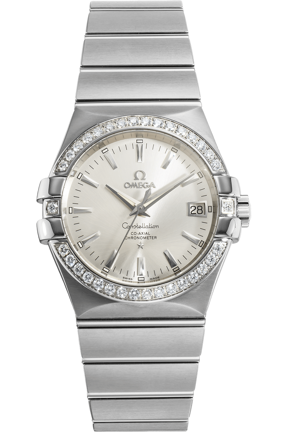 This pre-owned Constellation is crafted from stainless steel with a silver dial featuring stick markers. Replete... with a stainless steel bracelet, it is an exceptional choice for any collection.