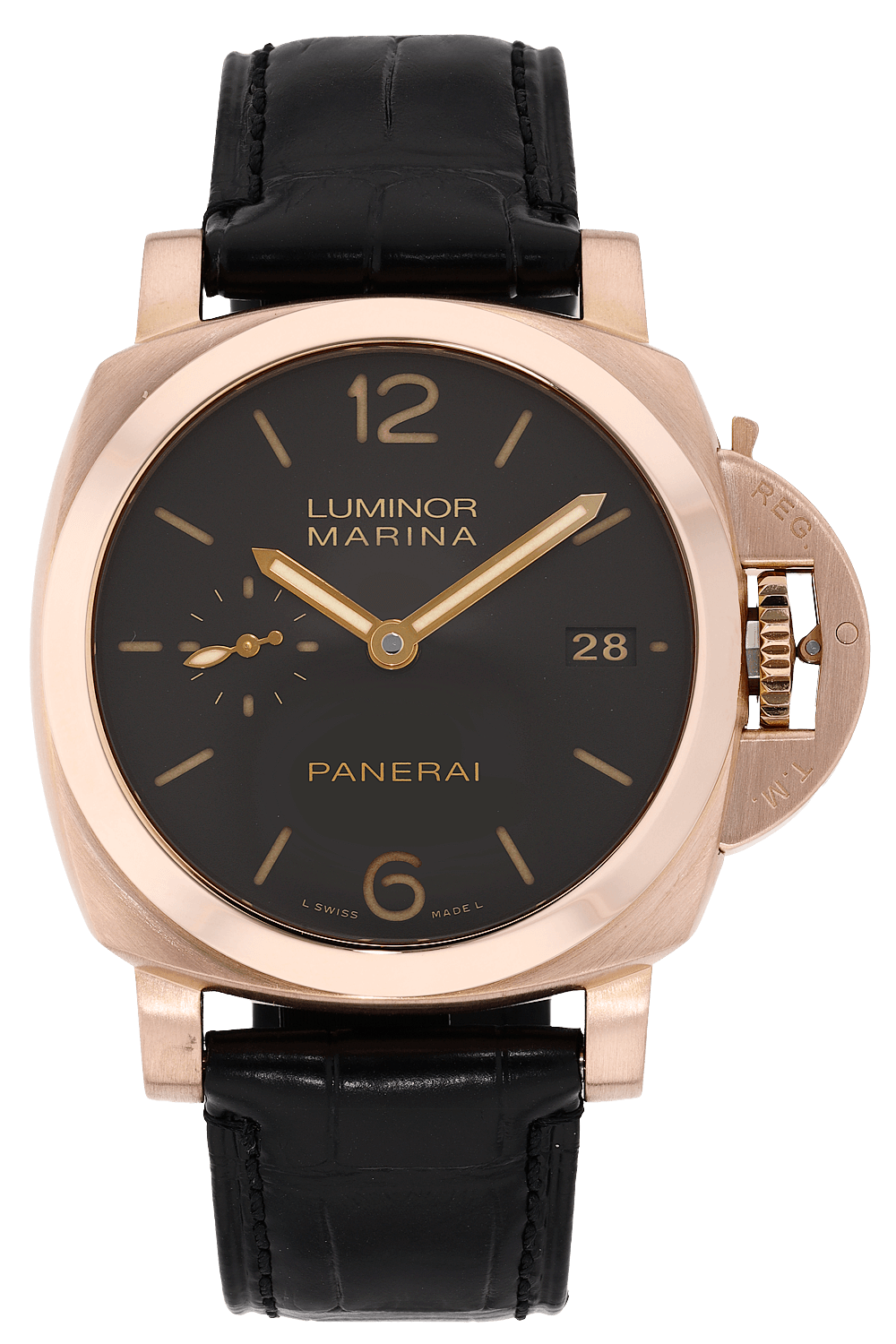 Truly the essence of Panerai, the Luminor has experienced exceptional worldwide success since its introduction in... 1933. A signature, patented device protects the winding crown while instilling ensuring strong ties to Panerai's aesthetic heritage. The Luminor's elevated design and attention to detail brings the heritage of Panerai tradition to modern wrists.