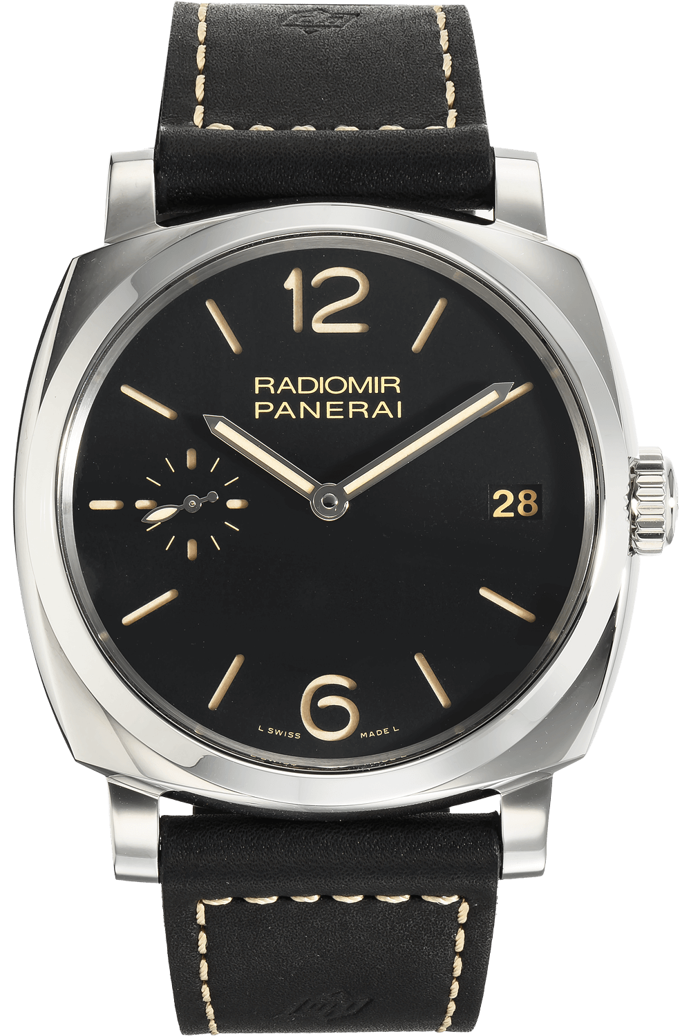 The Radiomir was the first watch created by Panerai and has since become an icon among timepieces. Its design... hallmarks include a large, cushion-shaped case, wire lugs and a luminescent dial with unparalleled legibility.