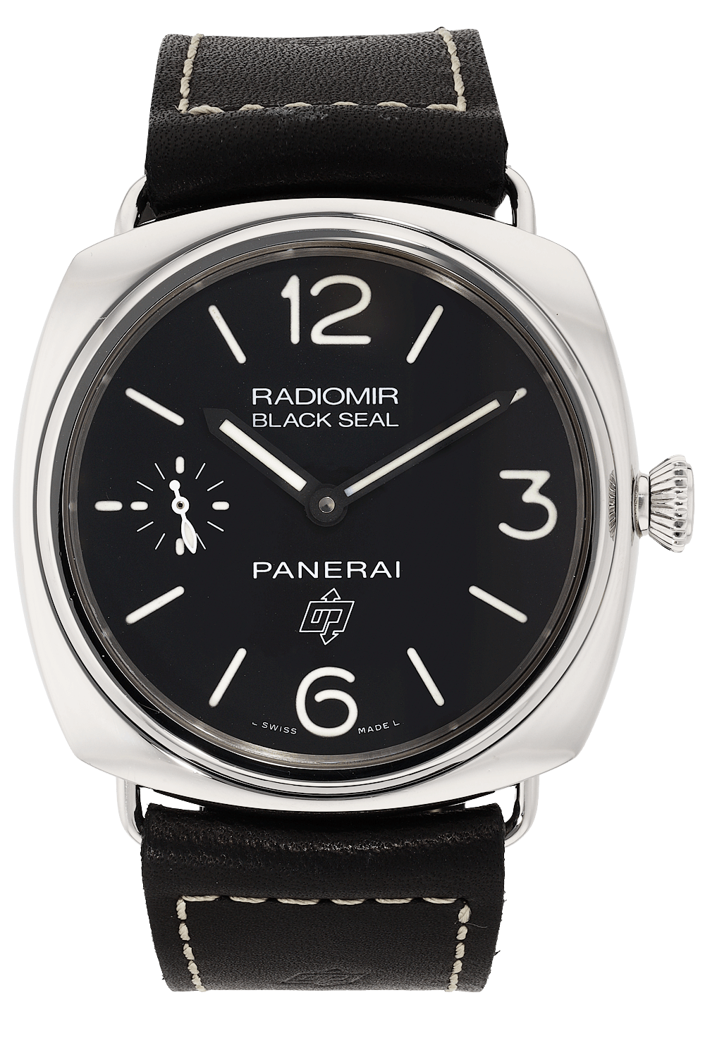 The Radiomir was the first watch created by Panerai and has since become an icon among timepieces. Its design... hallmarks include a large, cushion-shaped case, wire lugs and a luminescent dial with unparalleled legibility.