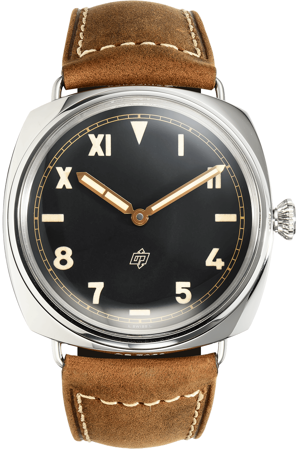 The Radiomir was the first watch created by Panerai and has since become an icon among timepieces. Its design... hallmarks include a large, cushion-shaped case, wire lugs and a luminescent dial with unparalleled legibility.