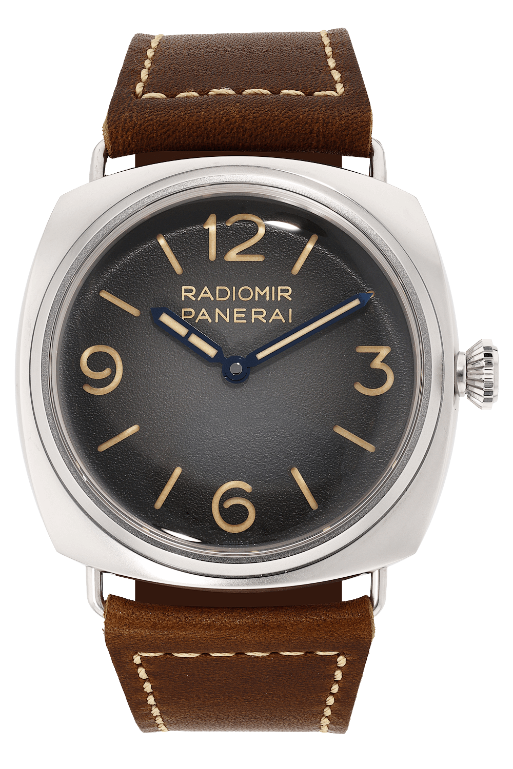 The Radiomir was the first watch created by Panerai and has since become an icon among timepieces. Its design... hallmarks include a large, cushion-shaped case, wire lugs and a luminescent dial with unparalleled legibility.