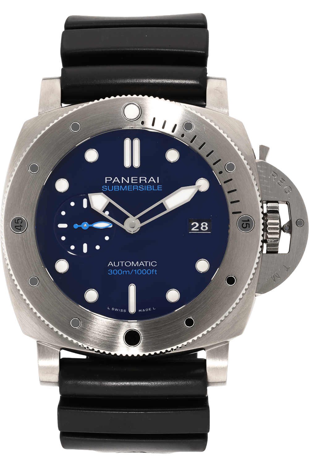 A survival instrument, the Panerai Submersible is an excellent diver's watch. It features an iconic, patented... device to protect the winding crown, which gives the timepiece a strong and decisive aesthetic.