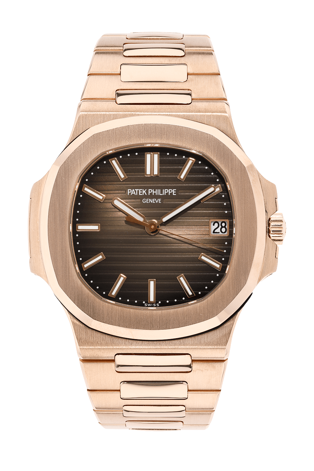 This pre-owned Nautilus Reference 5711 is crafted from rose gold with a brown dial featuring stick markers. Replete... with a rose gold bracelet, it is an exceptional choice for any collection.