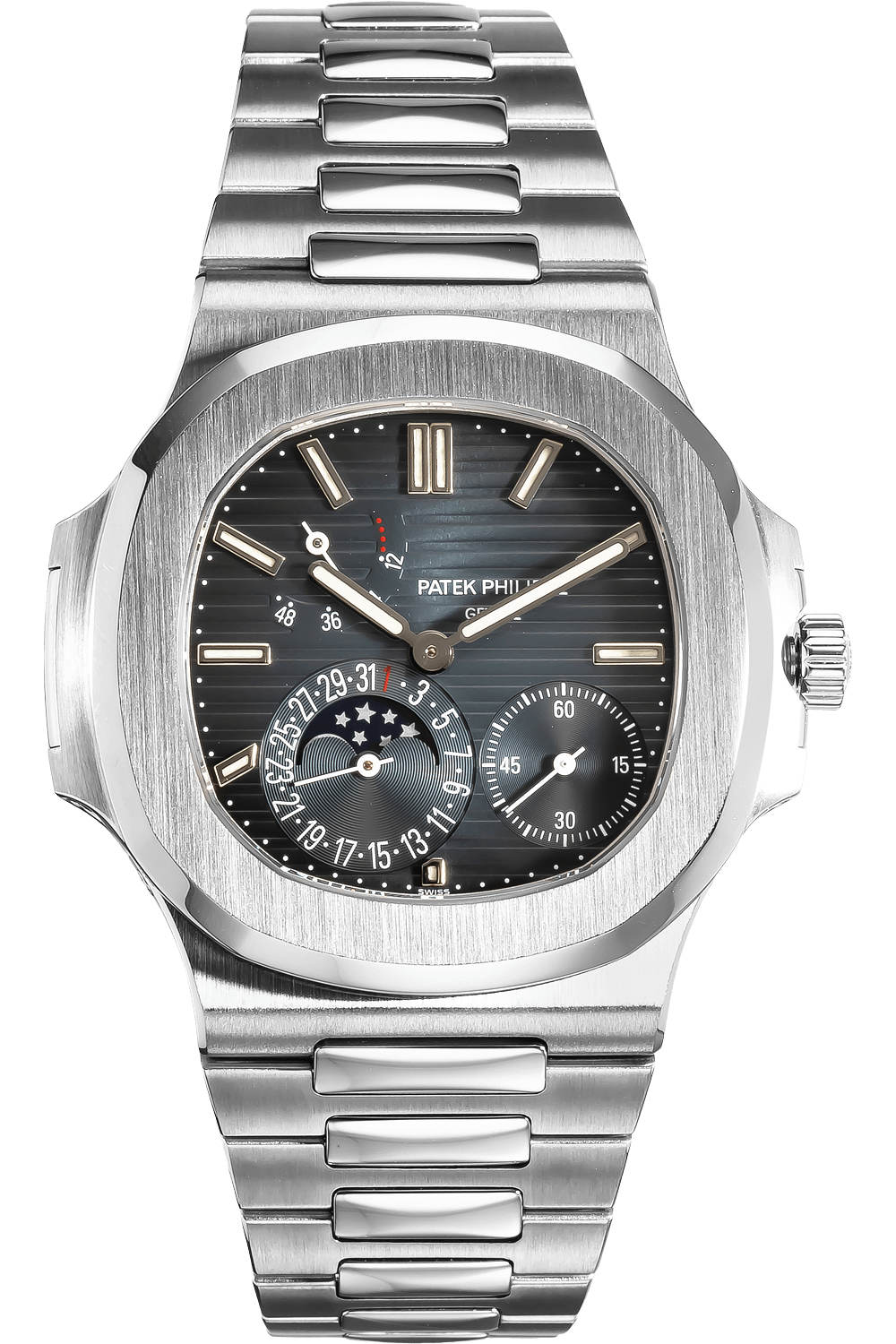 • Features Date, Moon Phase, Power Reserve, Second Hand