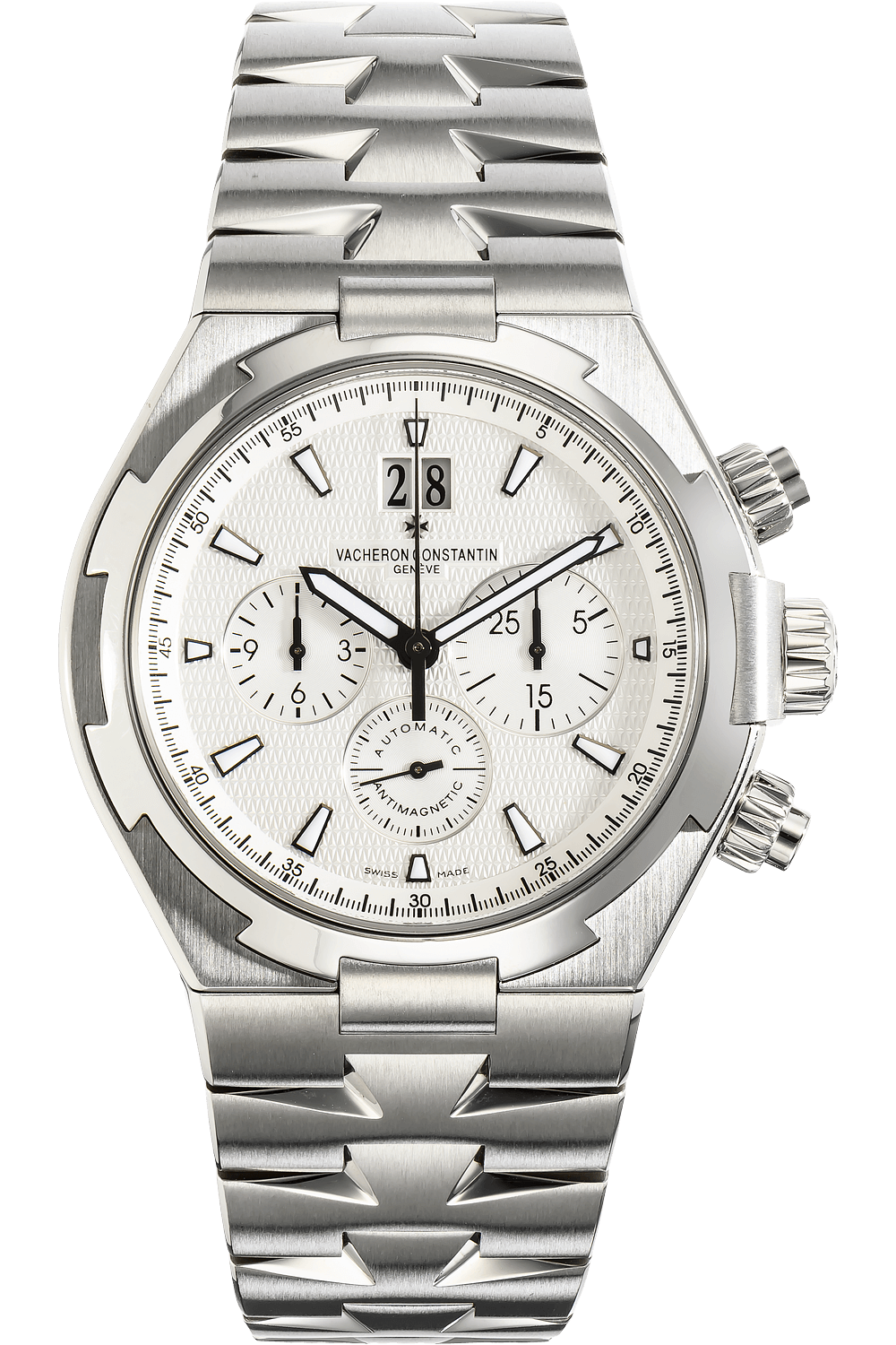This pre-owned Overseas Chronograph is crafted from stainless steel with a silver dial featuring stick markers.... Replete with a stainless steel bracelet, it is an exceptional choice for any collection.