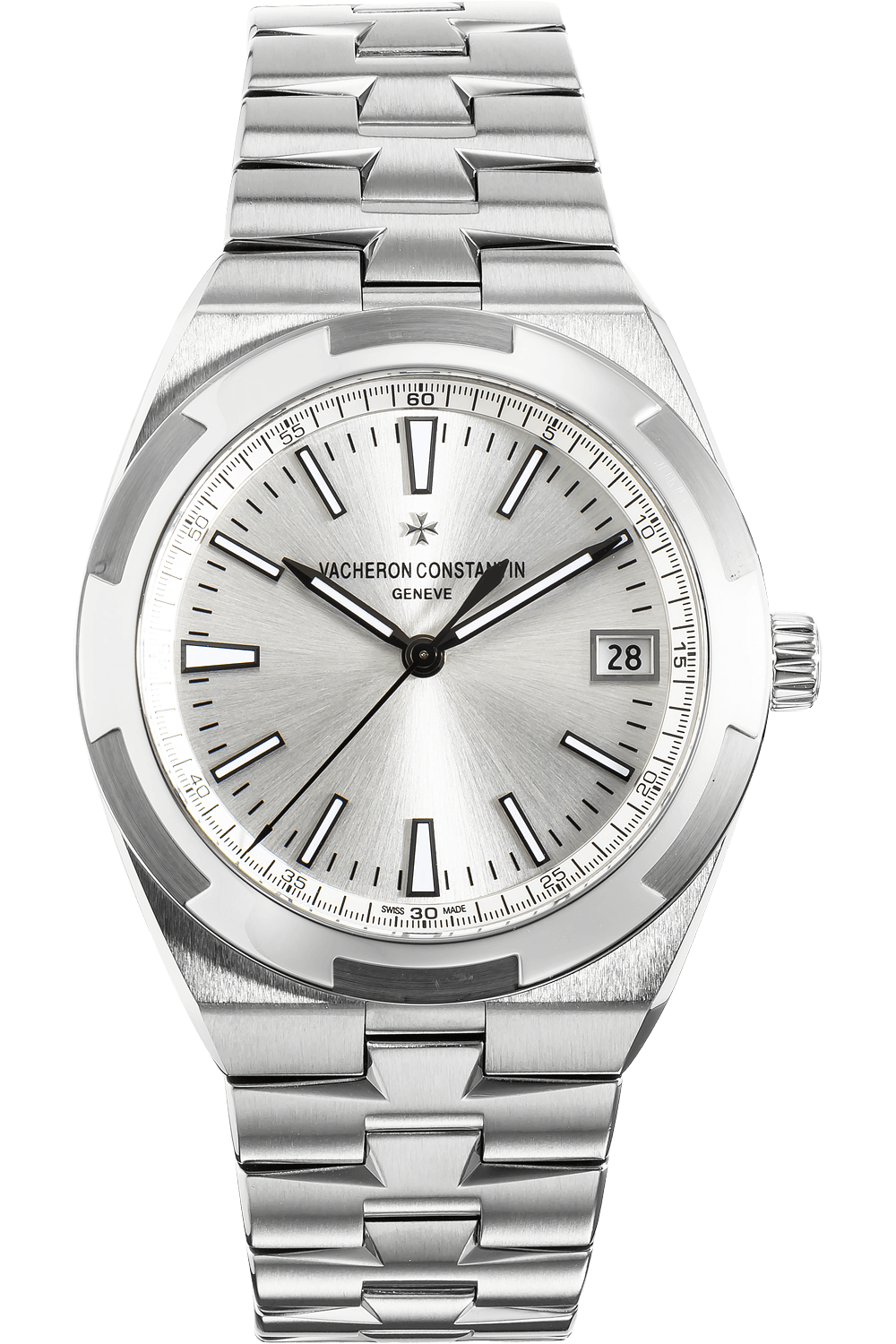 This pre-owned Overseas is crafted from stainless steel with a silver dial featuring stick markers. Replete with a... stainless steel bracelet, it is an exceptional choice for any collection.