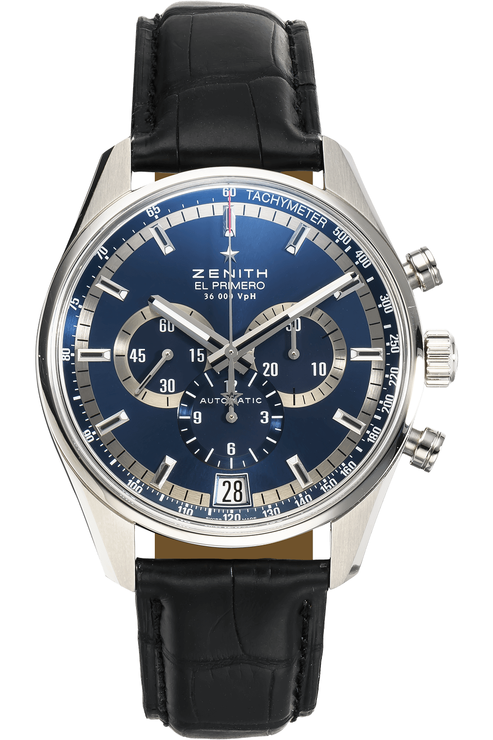 This pre-owned El Primero Charles Vermot Limited Edition is crafted from stainless steel with a blue dial featuring... stick markers. Replete with a black alligator strap with tang buckle, it is an exceptional choice for any collection.