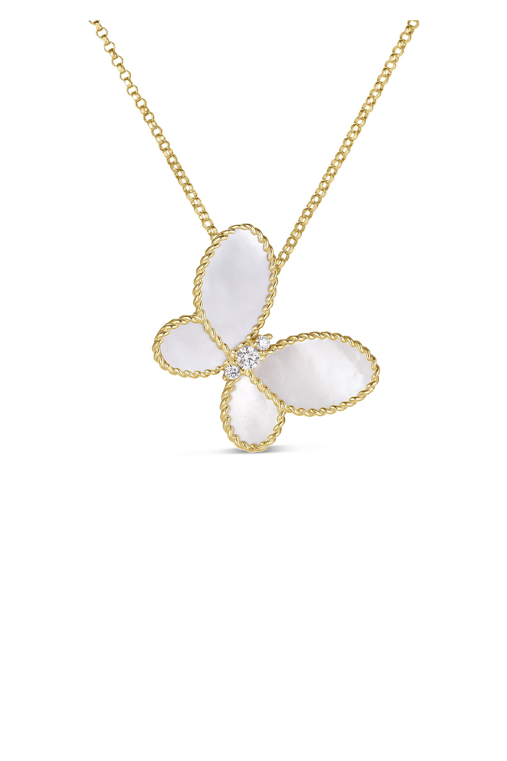 Jasmine Butterfly Necklace in 18K yellow gold, length 46 cm, mother-of-pearl total 1.85 ct. diamonds with Brilliant... cut total 0.07 ct. GH si