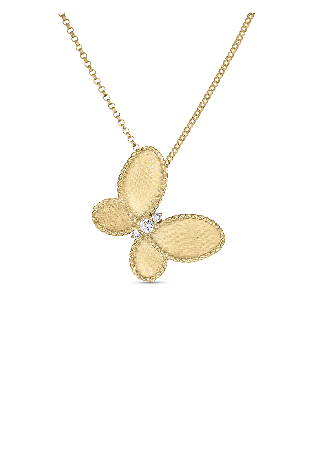 Jasmine Satin Finish Butterfly Necklace in 18K yellow gold, length 46 cm, diamonds with Brilliant cut total 0.06 ct.... GH si