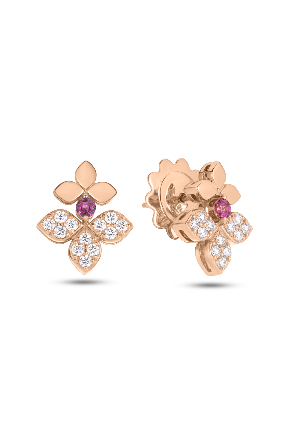 Love In Verona Earrings in 18K pink gold, rubellite and diamonds with Brilliant cut total 0.23 ct. GH si...