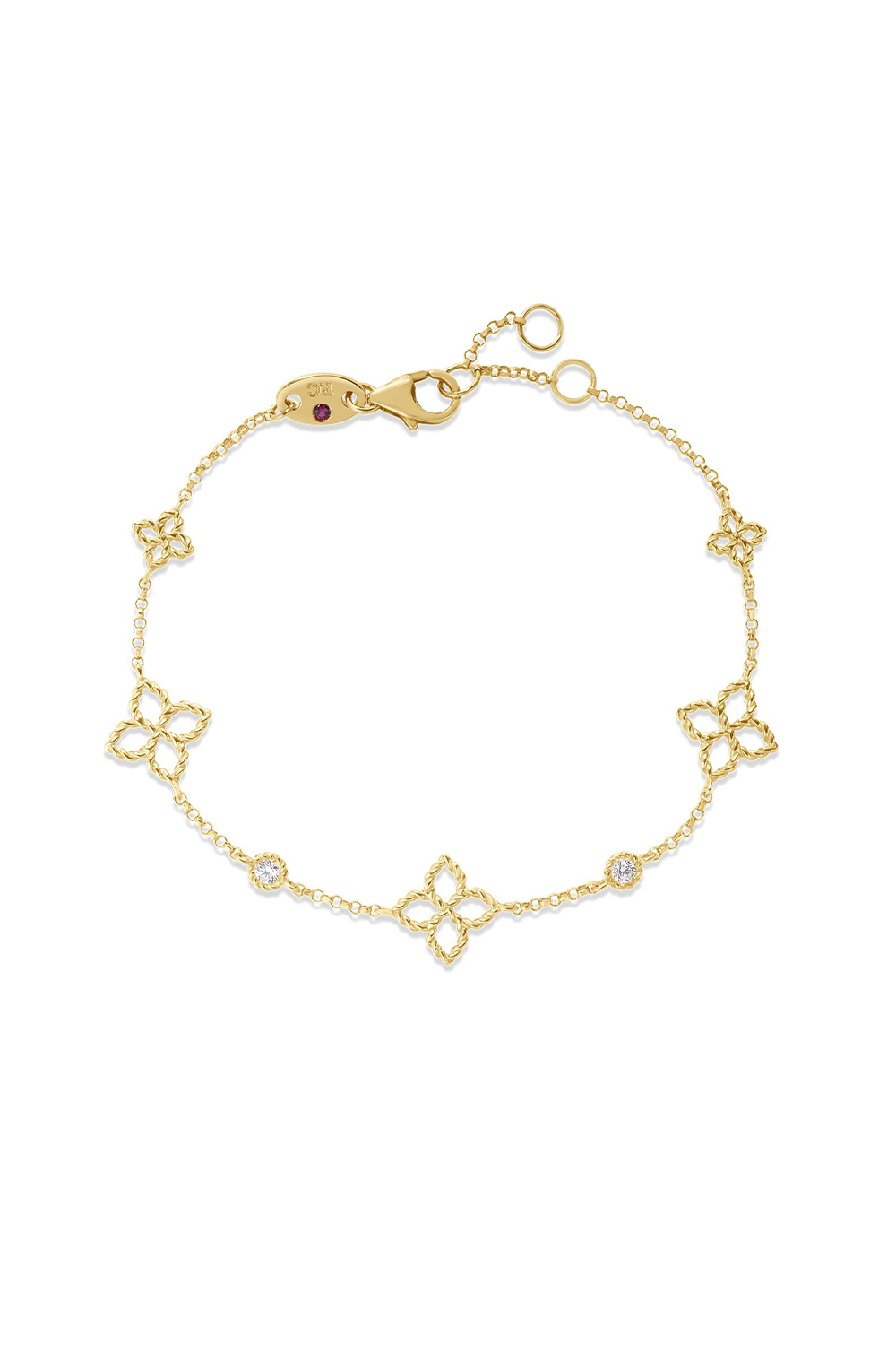 Principessa Flower Station Bracelet in 18K yellow gold, length 18 cm, diamonds with Brilliant cut total 0.06 ct. GH si...