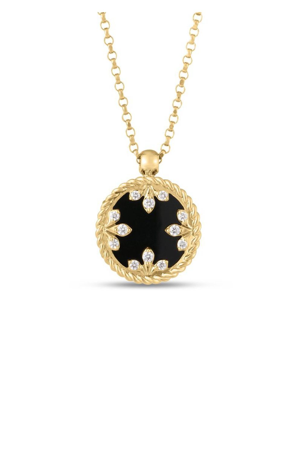 Venetian Medallions Small Pendant in 18K yellow gold, length 43 cm, black jade total 2 ct., diamonds with Brilliant... cut total 0.05 ct. GH si