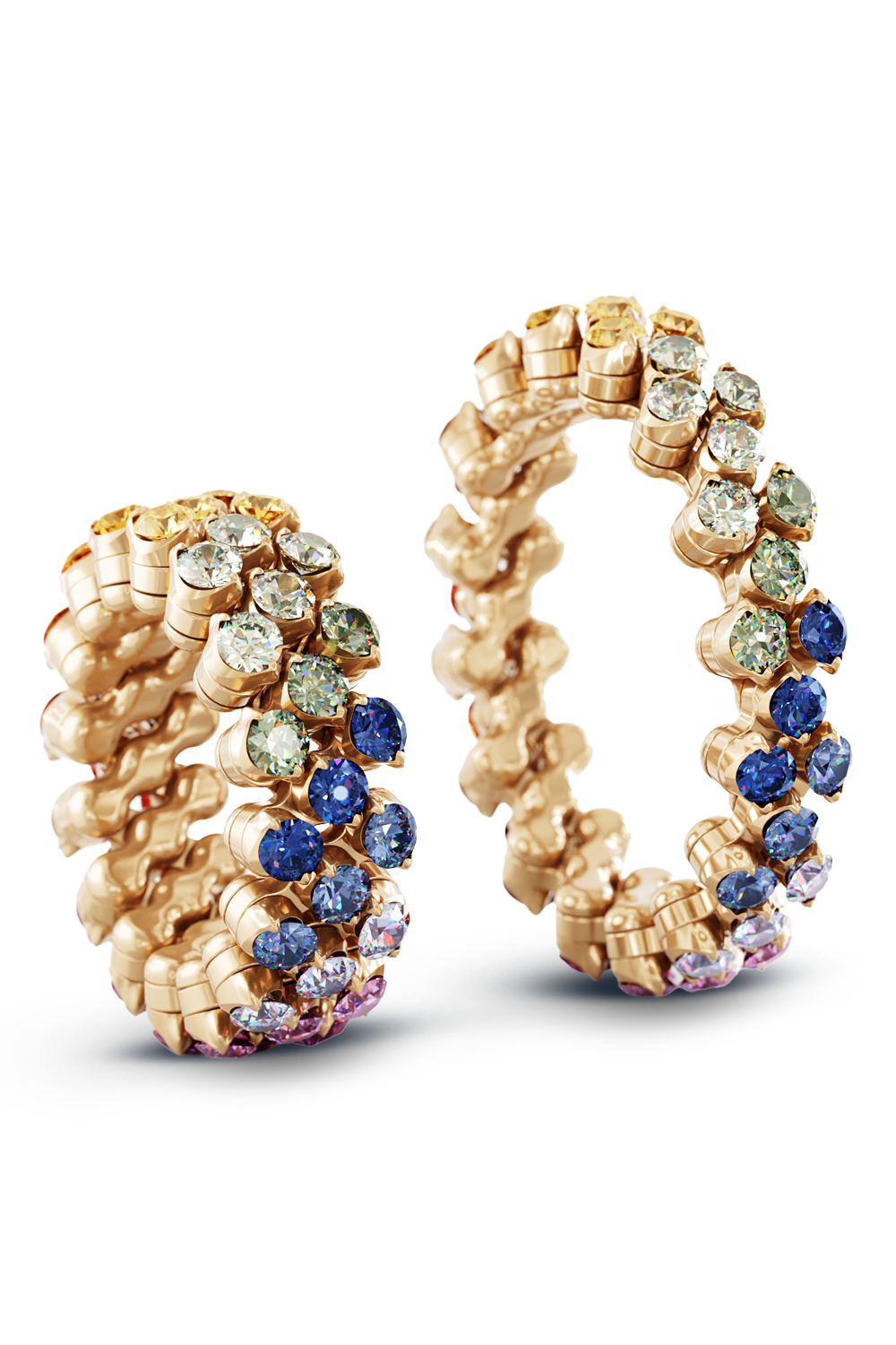 Brevetto 3-row Multi Size Ring in Pink Gold with Rainbow Sapphires