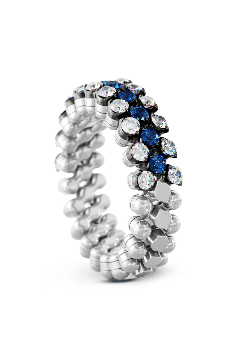 Brevetto 3-row Multi Size Ring in White and Black Gold with Sapphires