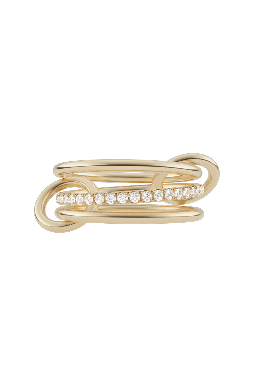 Sonny Ring in 18k yellow gold, size US 6.5, three linked rings with white diamonds and yellow gold connectors,... diamonds total 0.5 ct. G SI1
