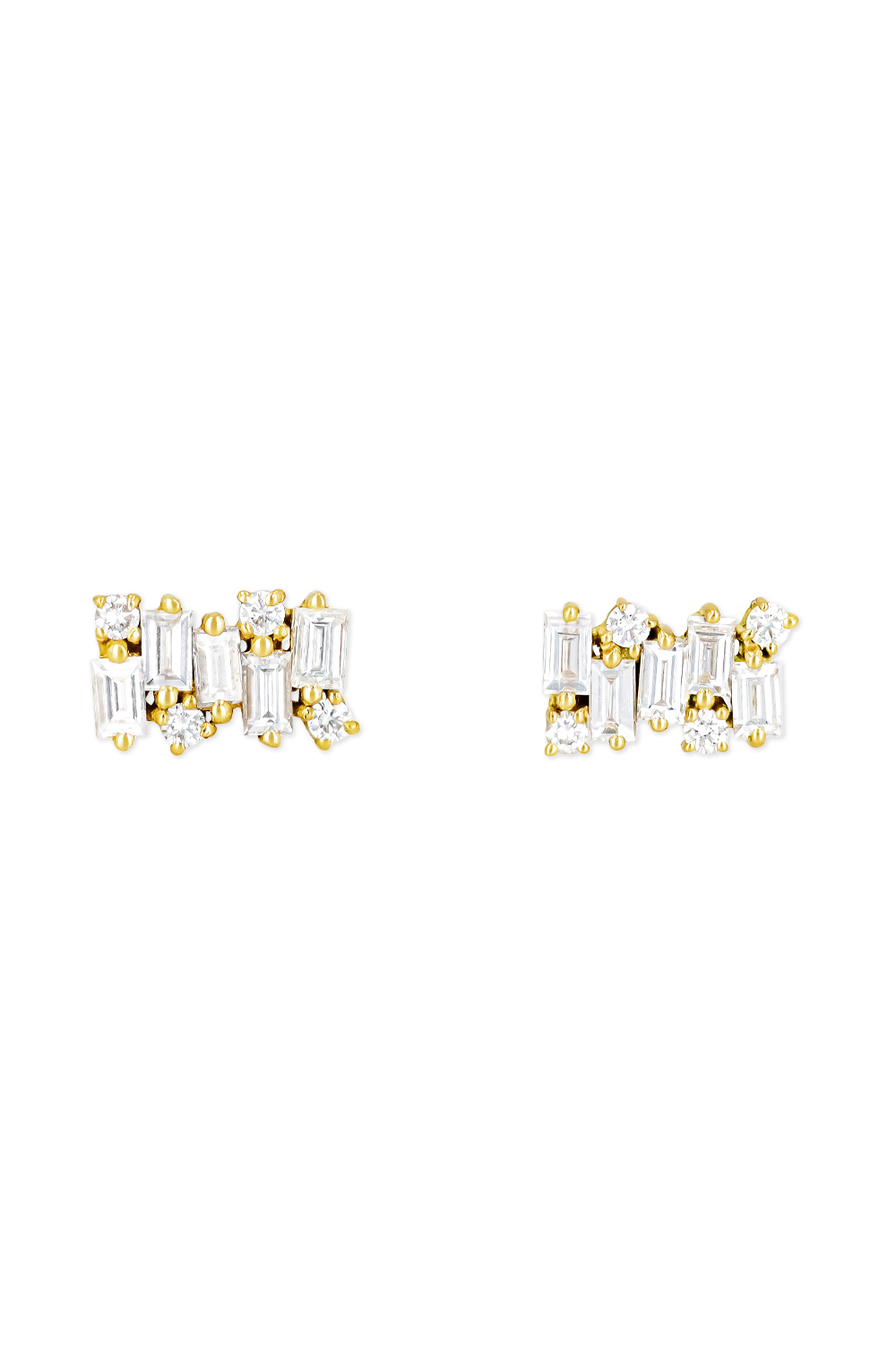 Shimmer Diamond Studs in 18k yellow gold, Baguette and Round cut diamonds total 0.5 ct. G VS...