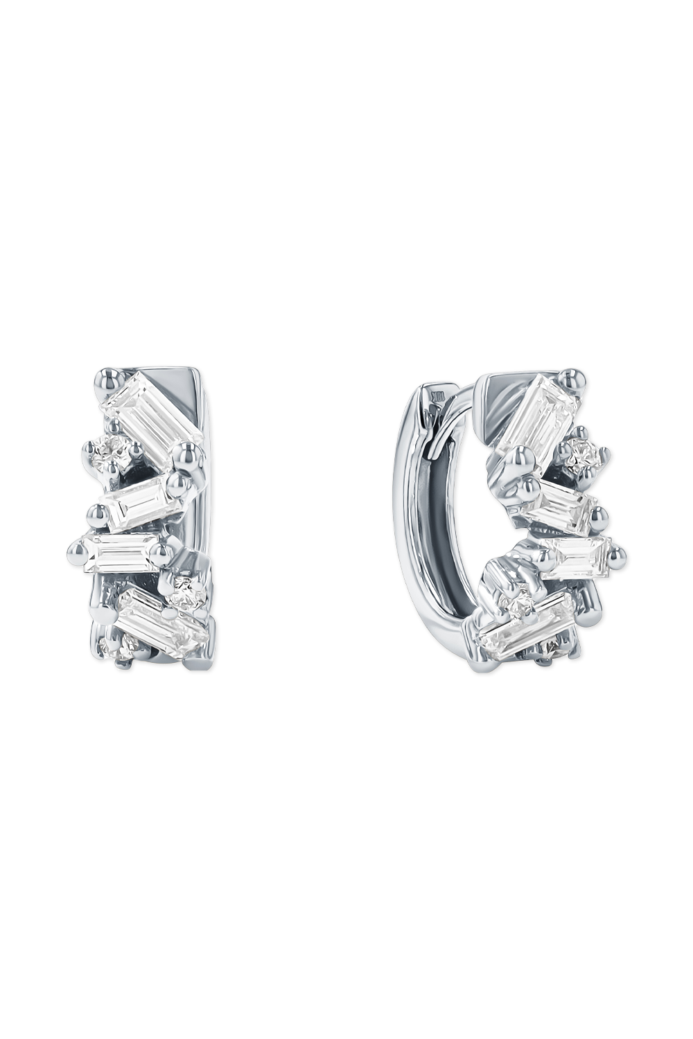 Frenzy Diamond Huggies in 18k white gold, Baguette and Round cut diamonds total 0.7 ct. G VS...
