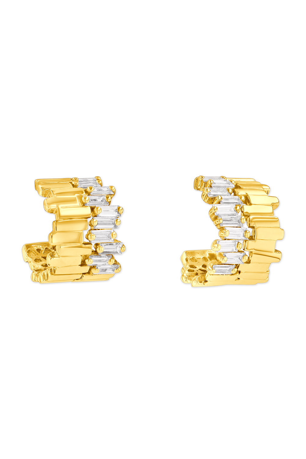 Golden Diamond Mini Hoops in 18k yellow gold, Baguette diamonds total ct. G VS...