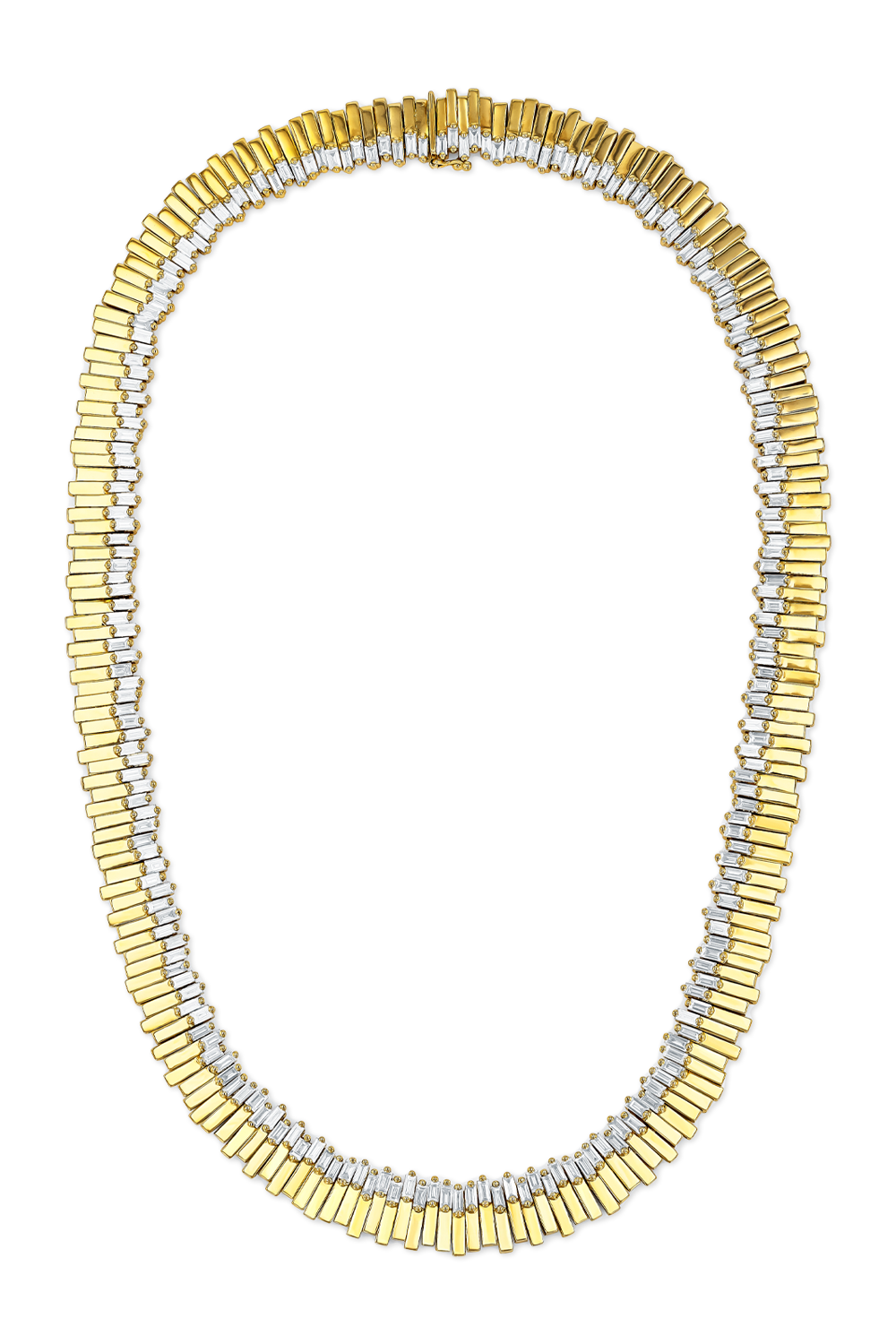 Golden Stacker Diamond Necklace in 18k yellow gold, length 16 in, Baguette cut diamonds total 10.92 ct. G VS...