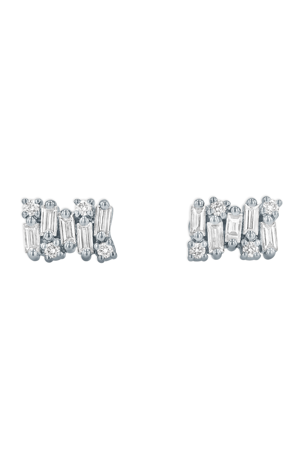 Shimmer Diamond Studs in 18k white gold, Baguette and Round cut diamonds total 0.69 ct. G VS...