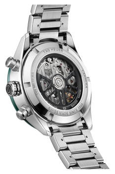Prodigious green pervades this trendy-looking 44mm TAG Heuer Carrera, all set for new adventures on and off the road.... The tone-on-tone green ceramic bezel makes a bold statement alongside the matching circular-brushed dial. Equipped with the relentless Calibre Heuer 02, this classic timepiece is ready to steer ahead.