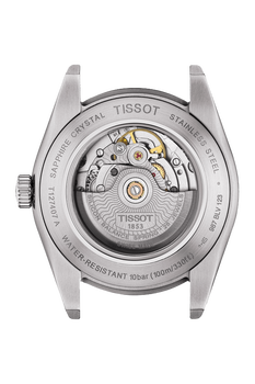 The Tissot Gentleman Automatic has an exhibition case back, allowing you to admire the Powermatic 80 movement with a... silicon spring. The rotor is finely engraved with the "Waves of Time" decoration.