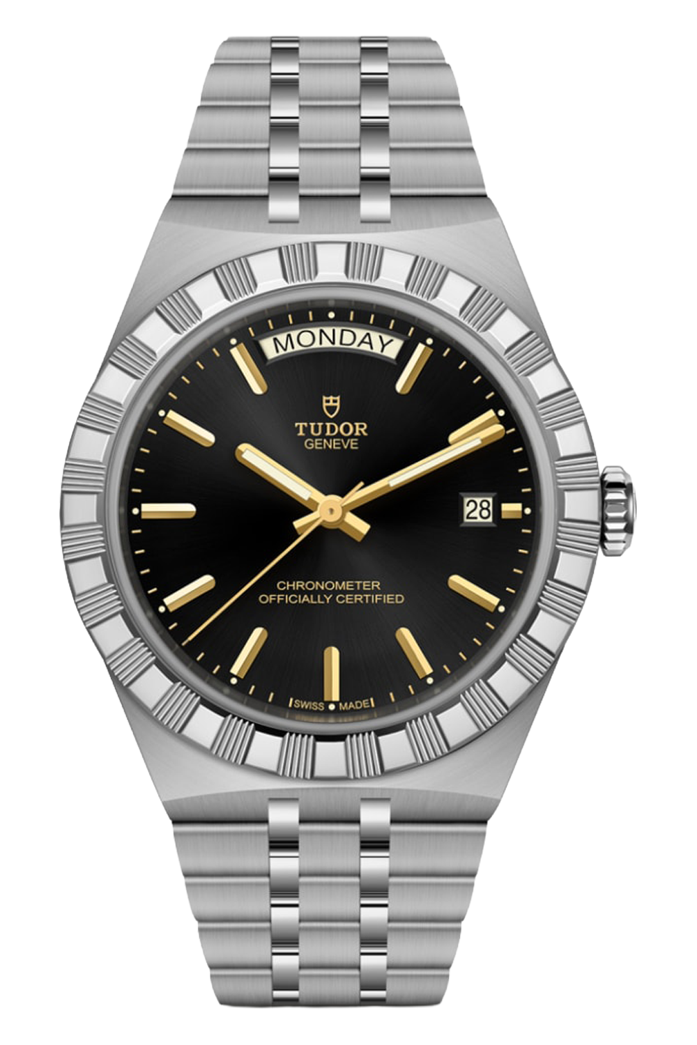 With its integrated metal bracelet ensuring an uninterrupted line with the case, this TUDOR Royal embodies fluidity... and unmistakable style. Characterised by its three wide satin-brushed links set between two slimmer polished elements, the smooth quality of its surfaces and edges, as well as the presence of the "T-fit" clasp, emphasise the importance that TUDOR places on ensuring its comfort on the wrist. Available in stainless steel or with alternating links in stainless steel and yellow gold, the meticulous finishes of the models in this range cater to every taste.